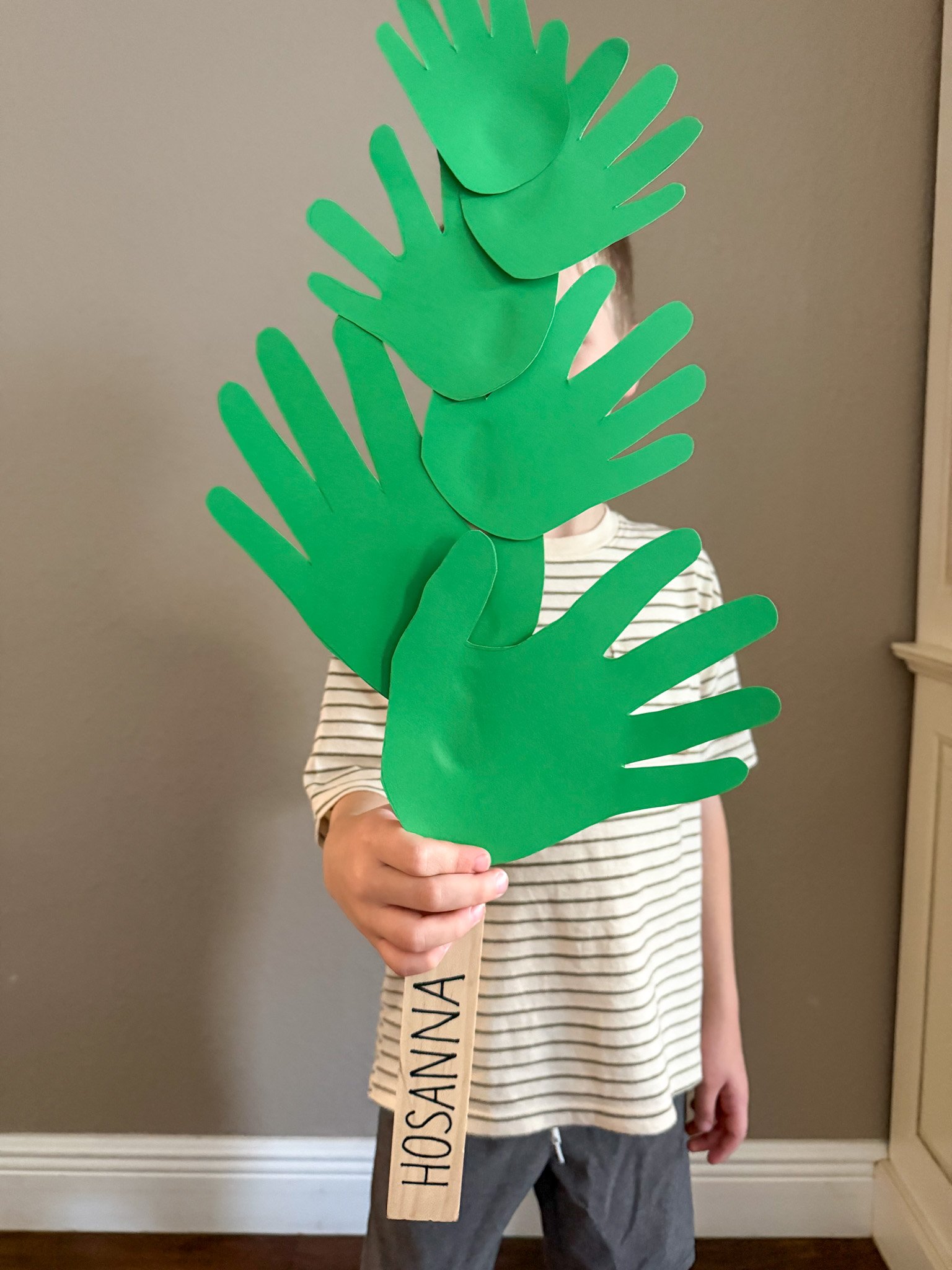 Fold a piece of paper in half. Place your child’s hand along the folded edge and trace it. Cut out the hand shape. When opened, it will look like praying hands. Place the Bible verse inside as a reminder that Jesus prayed to the Father before the cross.